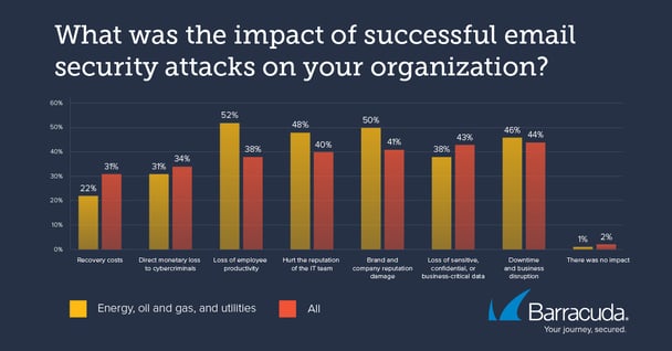 The impact is significant. Barracuda’s 2023 report on email security trends notes that only 2% of respondents indicated that email attacks had no impact on their organization. Downtime and business disruption, loss of confidential data, and reputational damage topped the list of impacts of successful attacks.